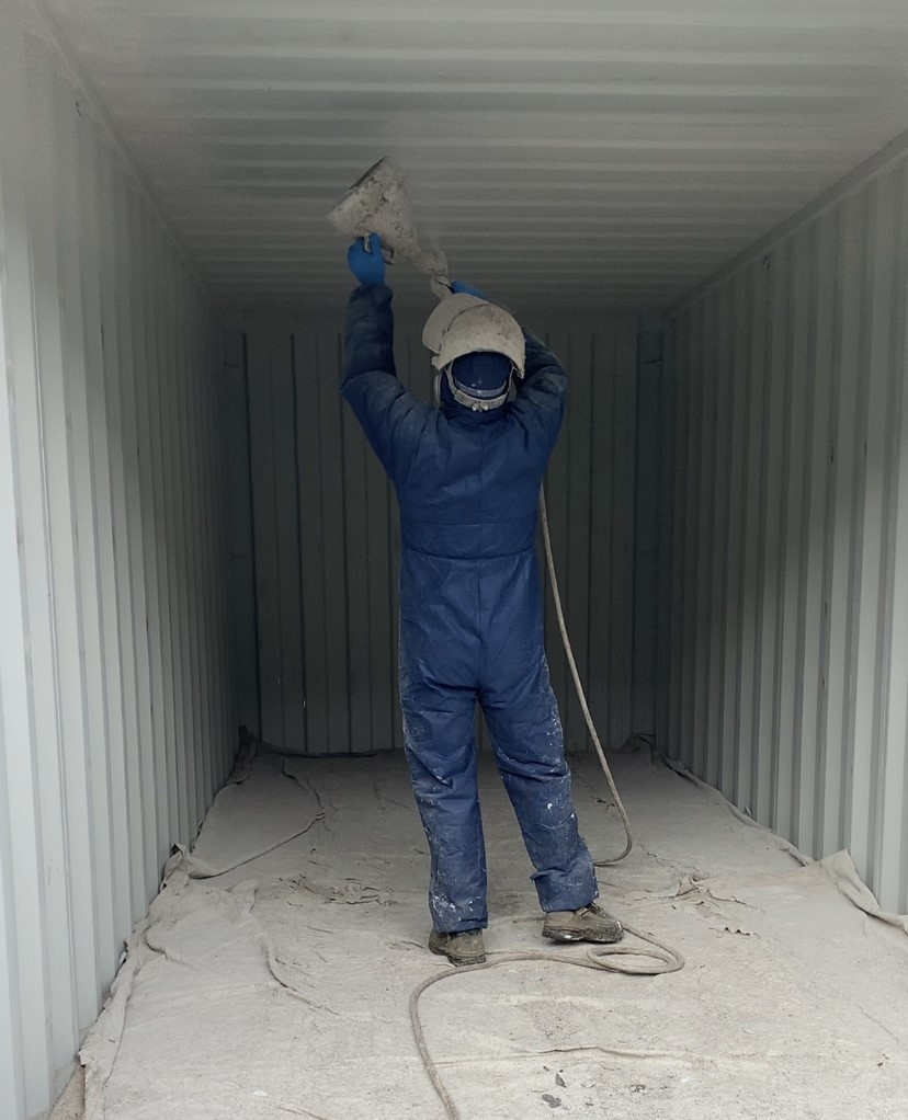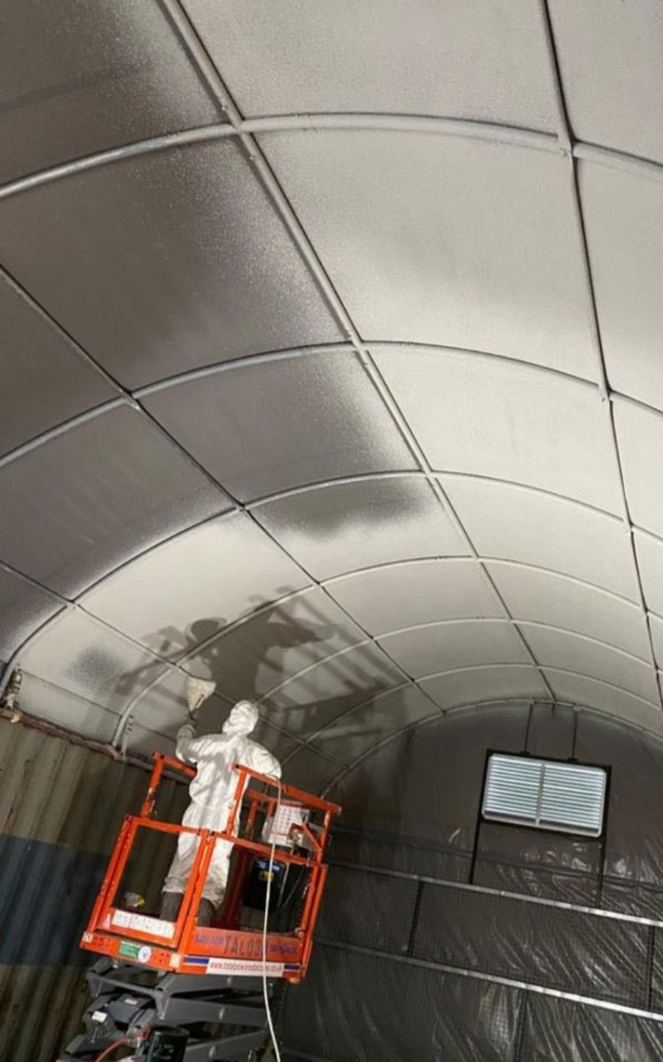 We spray Grafo-Therm anti condensation paint on shipping containers, warehouses, garages, self-storage containers, metal roofs, vans, trailers and more.